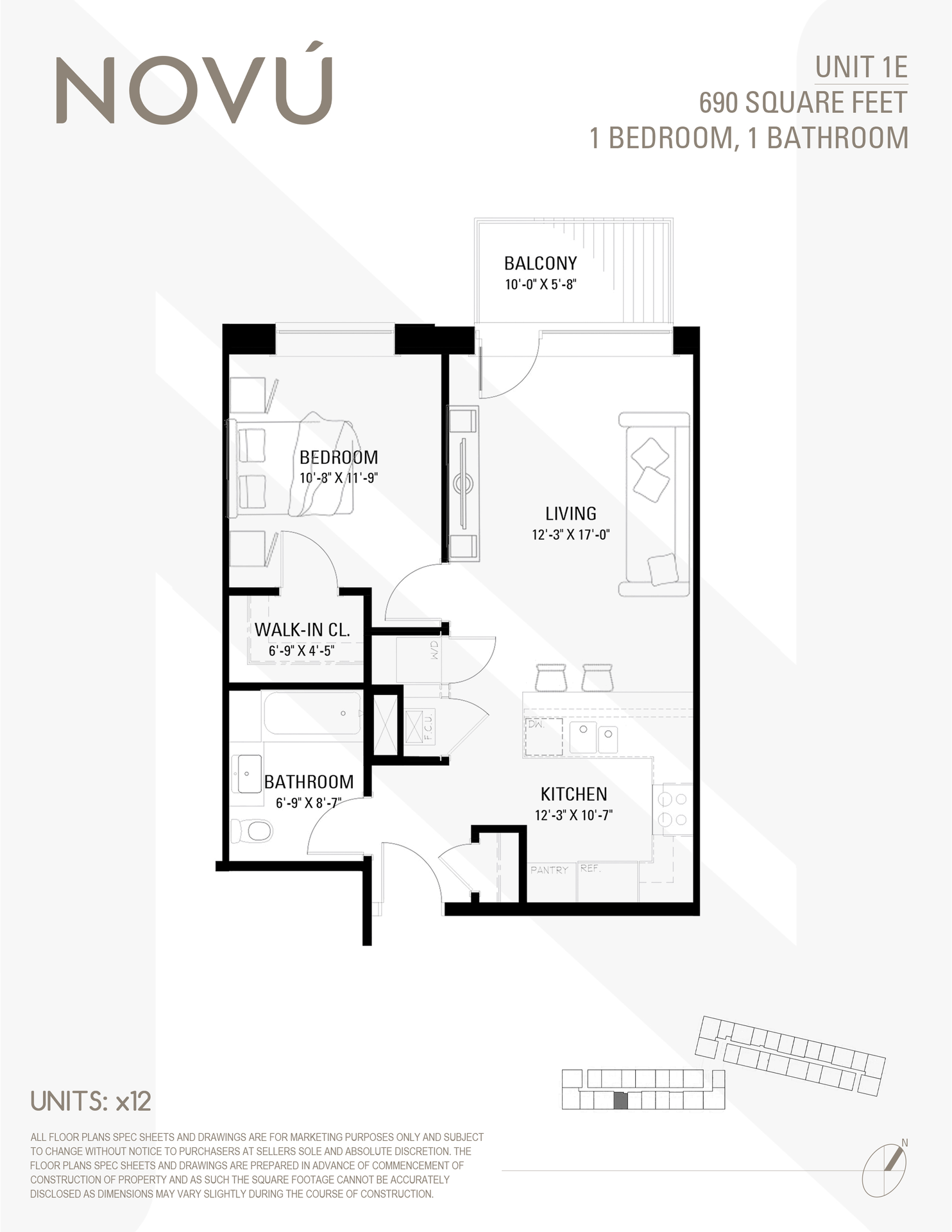 1E Situated just off the North Branch Chicago River, Novú is a new construction luxury apartment development from award-winning builder, Noah Properties. Expertly fusing the beauty of nature with the energy of city living, Novú delivers a next-level living experience today’s renters prefer. Boasting incredible resort-style amenities, residents will enjoy the private cabanas that surround the swimming pool, access to an expansive rooftop lounge with outdoor grilling, dining, and gaming areas – plus an entertainment penthouse framed by floor-to-ceiling windows that allow for stunning panoramic views of the serene neighborhood. The state-of-the-art health & fitness center has been outfitted with Peloton, Tonal and Rogue equipment, and also features a dry sauna relaxation room. Beyond the amenities, residents will appreciate the sophisticated finishes, high-design style, and modern in-home conveniences crafted around today’s lifestyle. Each apartment features high ceilings, oversized European windows with custom treatments and modern wide plank flooring that allows the natural light to fill the home. The open concept layout is ideal for everyday living and entertaining. The kitchen features custom European cabinetry for ample storage, solid quartz countertops, and a stainless-steel appliance suite. The living room is centered by a custom three-sided fireplace and flows through to the private patio or balcony space for select floor plans. Most floor plans also feature en-suite bedrooms with large primary bathrooms boasting curbless walk-in showers, dual sink vanities, and spacious walk-in closets. Secondary bedrooms and bathrooms maintain similar high-end finishes. Other features include in-home washer and dryer, extra storage closets, dual building elevators, a secure package room, garage parking, a pet grooming room, EV charging stations, on-site maintenance and management, and more!